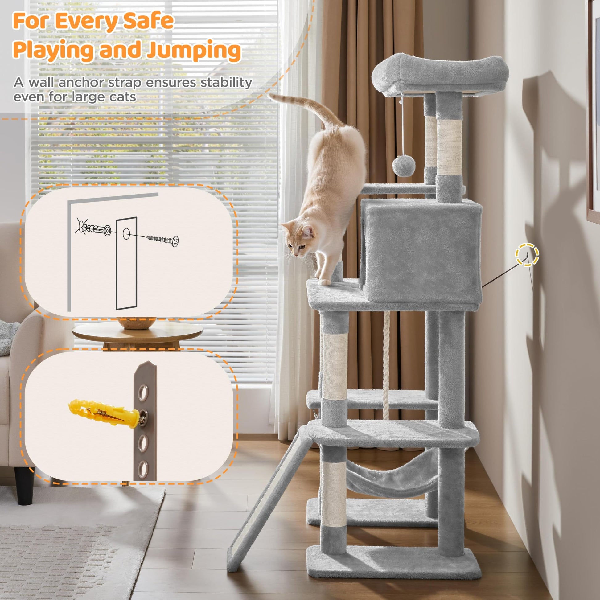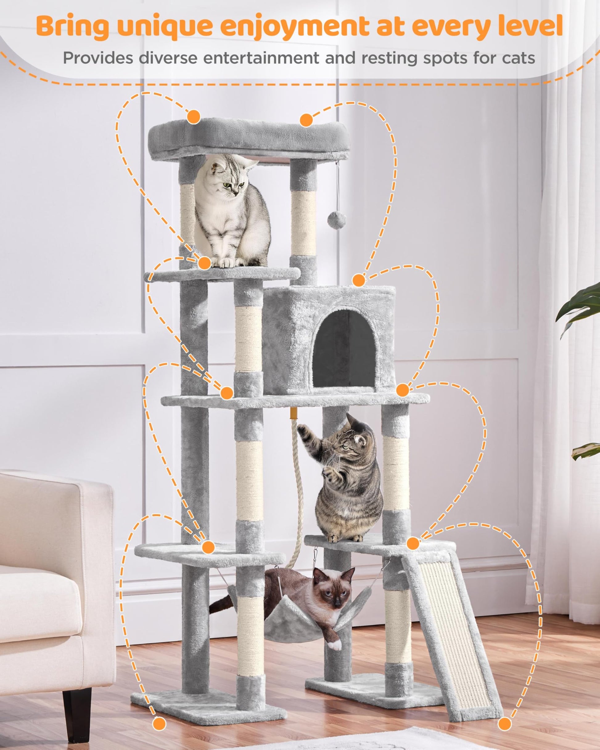 Yaheetech Cat Tree Cat Tower, 63in Multi-Level Pet Furniture for Indoor Kitten w/Sisal-Covered Scratching Posts & Condo, Activity Center for Kitty, Black